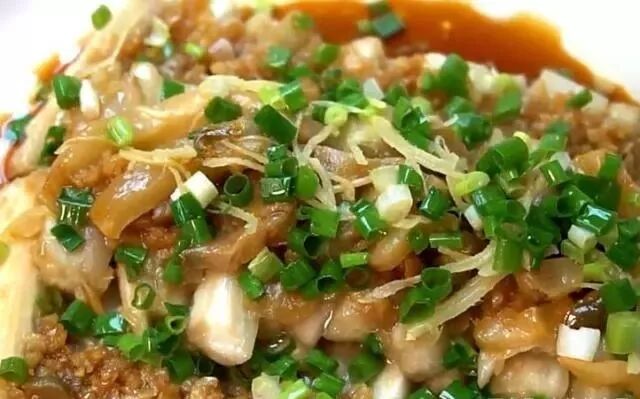 第四步:锅中倒入水,水烧开后放入调好味的茄子,盖上盖子大约蒸6分钟,蒸好之后端出来撒上适量的葱花,浇上烧好的热油,就可以吃了。