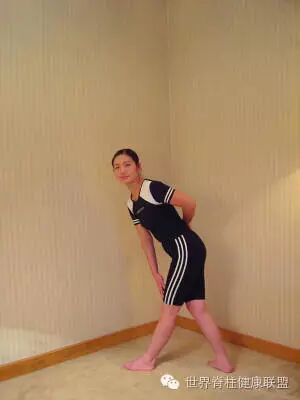 注意事项:双手抵地方向时,如能抵地更好,不能抵地尽量下弯,但双膝不能屈曲。微信公众平台:脊椎健康联盟