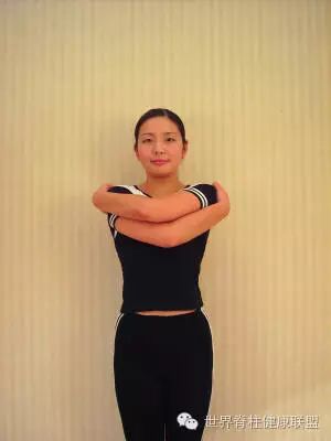 体操方式:正立、双手抱紧两肩,左右转摇胸廓各8×4次。