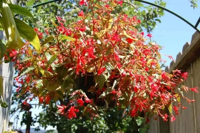 常见的四季秋海棠就经常被养成吊盆植物,其实还有其他如:竹节秋海棠、丽格海棠、大花秋海棠等品种,都比较适合养成吊盆花卉。