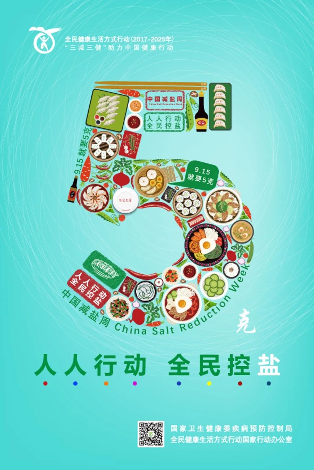 国家行动办公室于9月14日至20日开展中国减盐周宣传活动,向公众宣传“915”(就要5克)的减盐理念,传播低盐饮食知识,促进全社会共同关注并践行减盐行动。