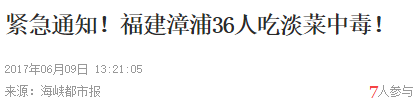 2017年6月9日,福建漳州市漳浦县36名村民因海虹中毒被紧急送医救治。