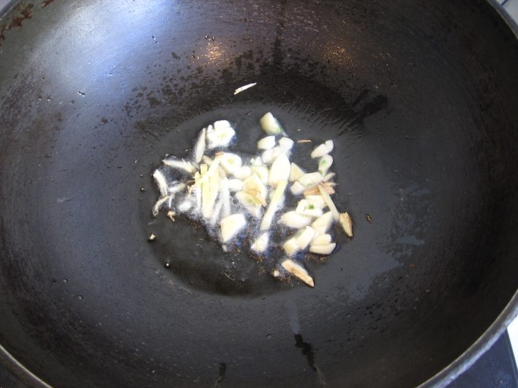 4、锅中放适量油,加入蒜和姜丝炒香。