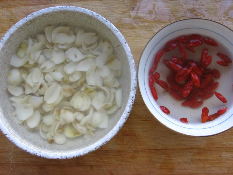 1、干百合与枸杞用水提前泡发。