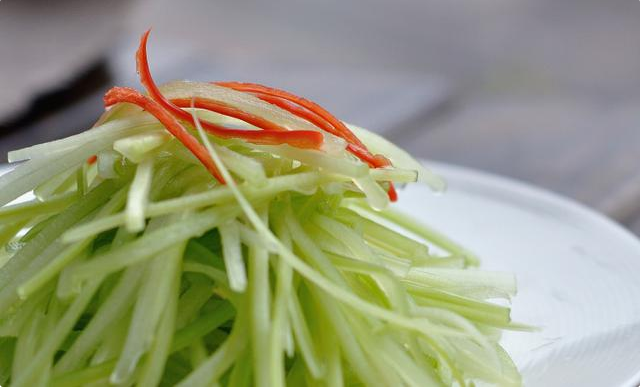 单吃西芹总有些索然无味,但把西芹切丝用糖醋和花椒油等来拌制,就可以给它增添一种别样的风味哦,而且吃起来十分清爽。