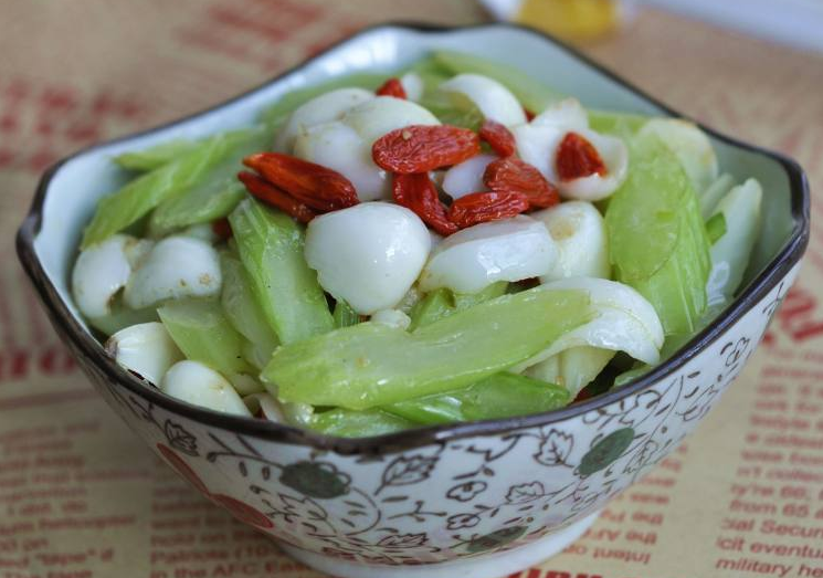 芹菜性味甘凉,具有清胃、涤热、祛风之功效,含较多的膳食纤维。百合味甘微苦,性平,有润肺止咳、清心安神之功,多食它会加快皮肤细胞的新陈代谢,且提高身体免疫力,同时还有防癌之功效。