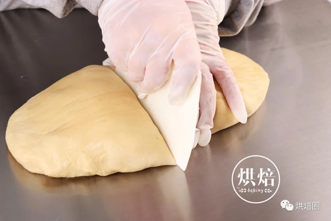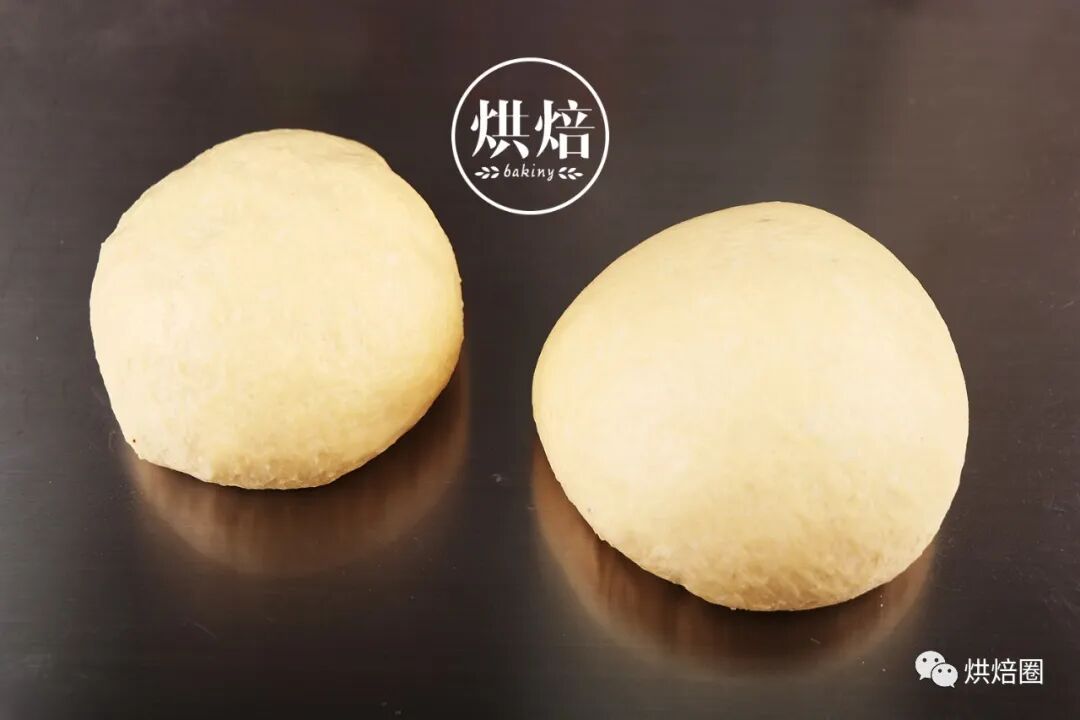 ④发酵好的面团按压排气,等分割成两个,整形搓圆。
