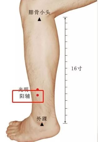 阳辅穴在小腿的外侧,脚外踝关节上方四寸的位置。