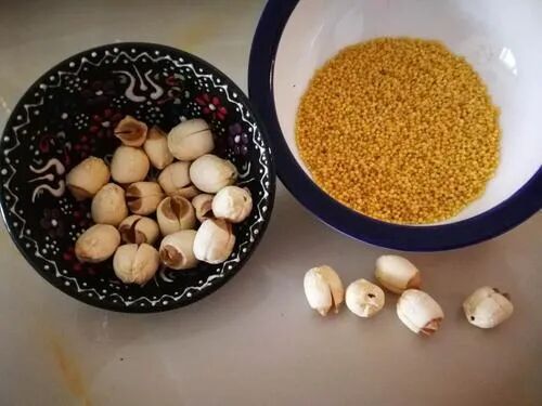 【材料】小米100克,莲子50克。