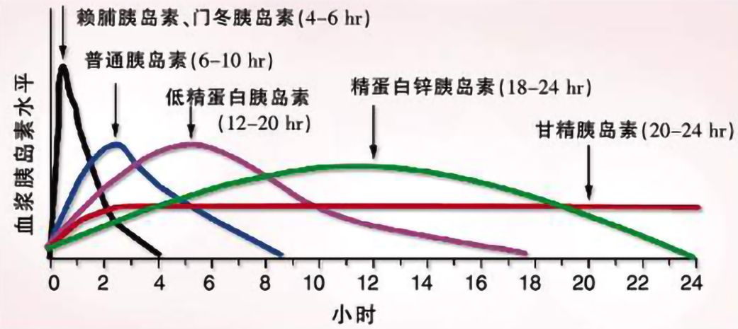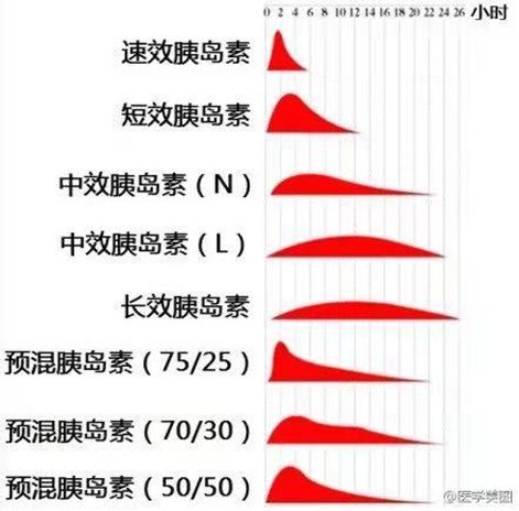 图示为不同作用时间及预混胰岛素作用效果随作用时间变化,图片源自医学美图