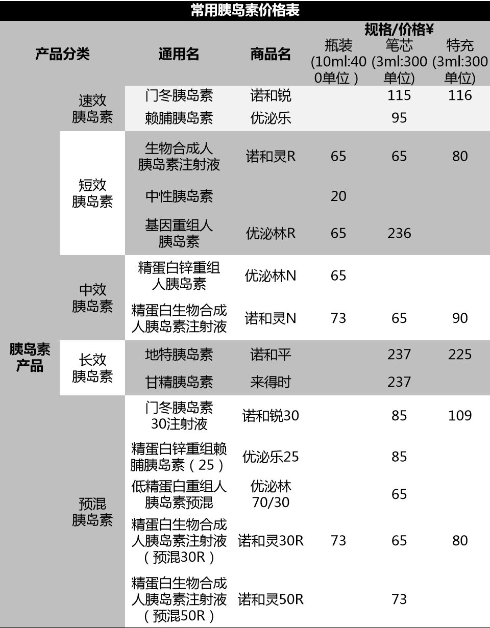笔者将市面上常见多种胰岛素,及其不同规格的价格,总结出来,如下表所示(仅供参考,具体价格请咨询当地医生、药房):