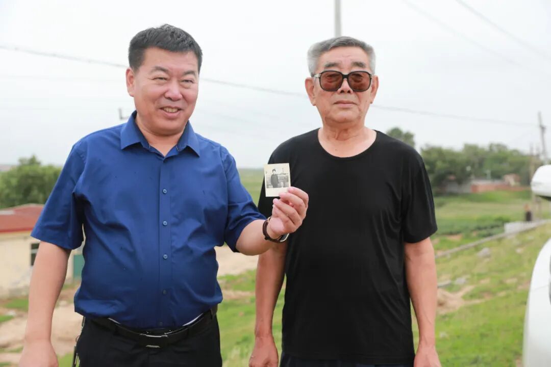 ▲尚廷奎、尚海防父子俩在七十年代住所旁(摄影:胜利油田孤岛采油厂李超君)