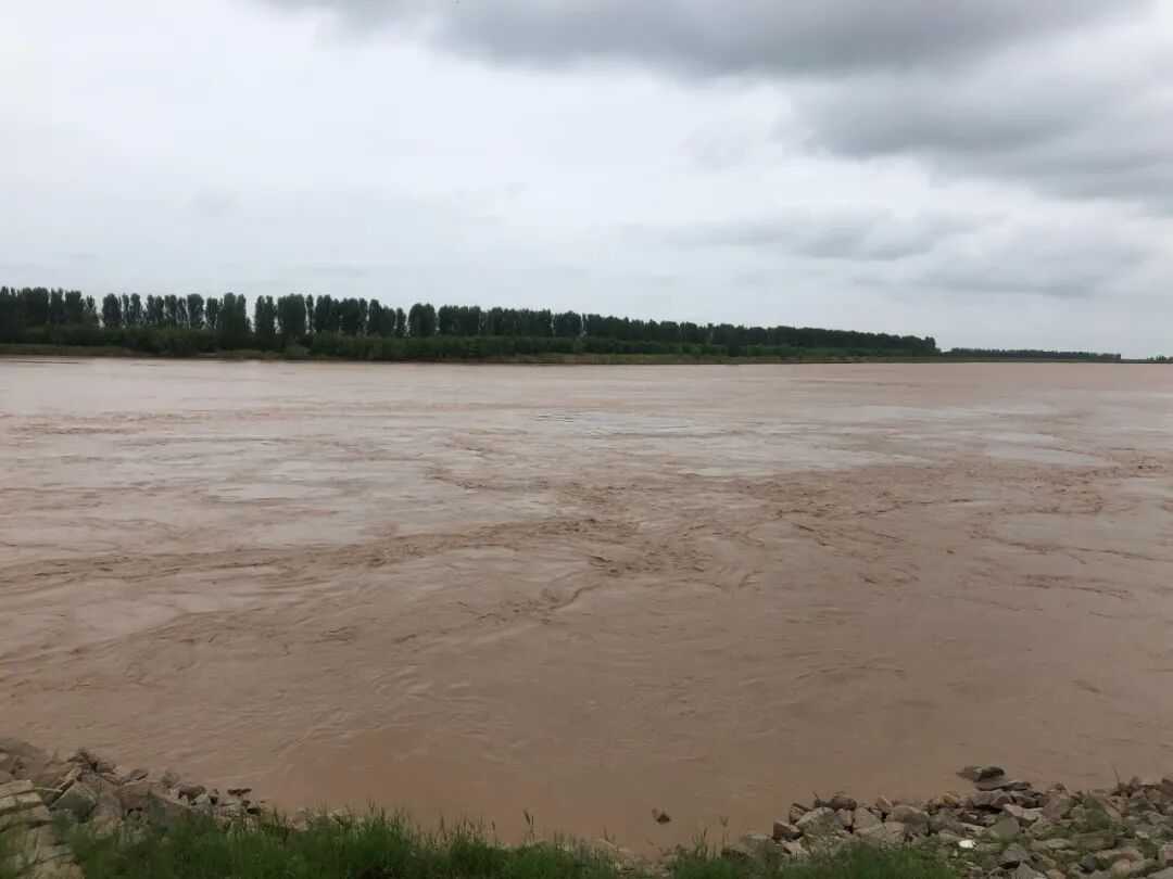 在下游最后一座浮桥附近,黄河走了一个直角弯。汛期里,水流湍急。