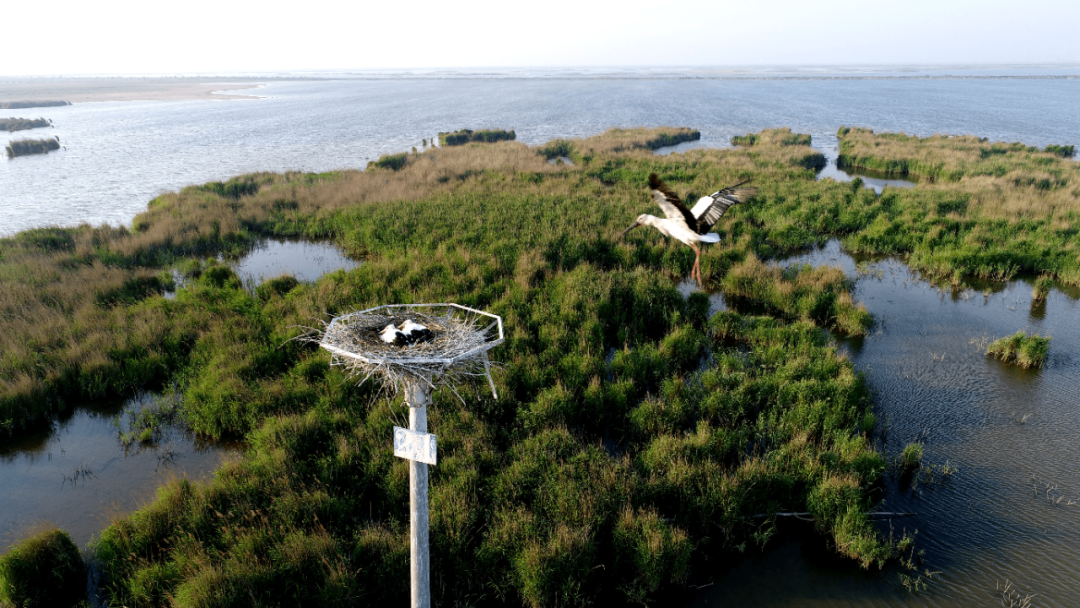 ▲东方白鹳在黄河口筑巢栖息(摄影:东营广播电视台杨斌)