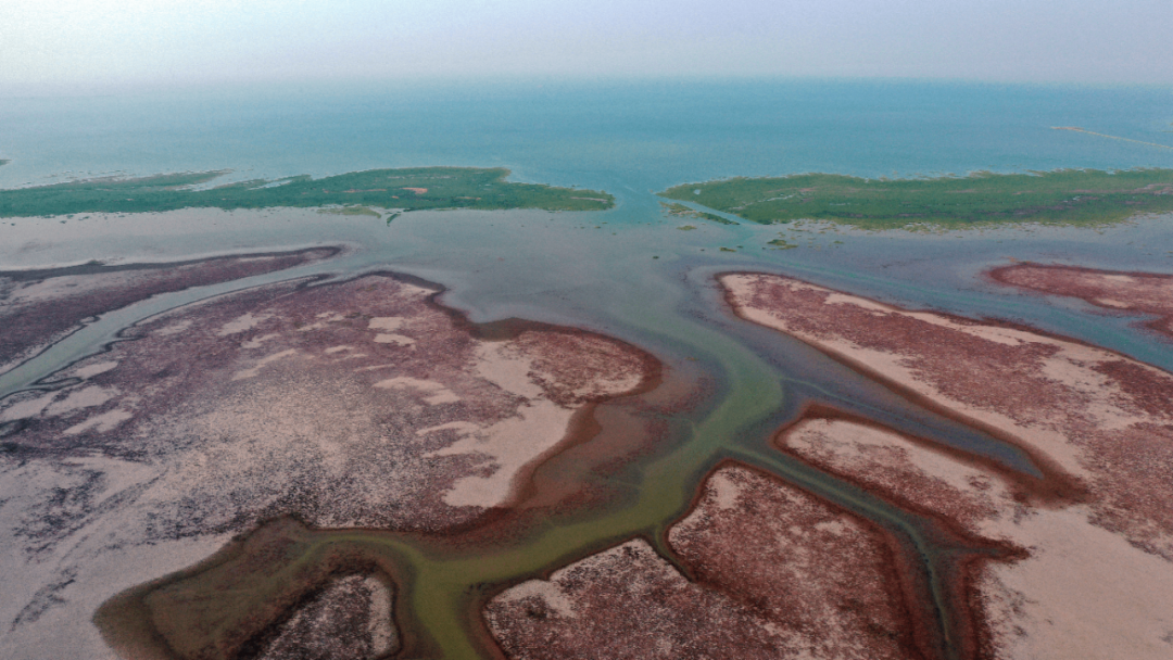 ▲黄河携带的泥沙在黄河口源源不断塑造出新生的土地(摄影:东营广播电视台杨斌)