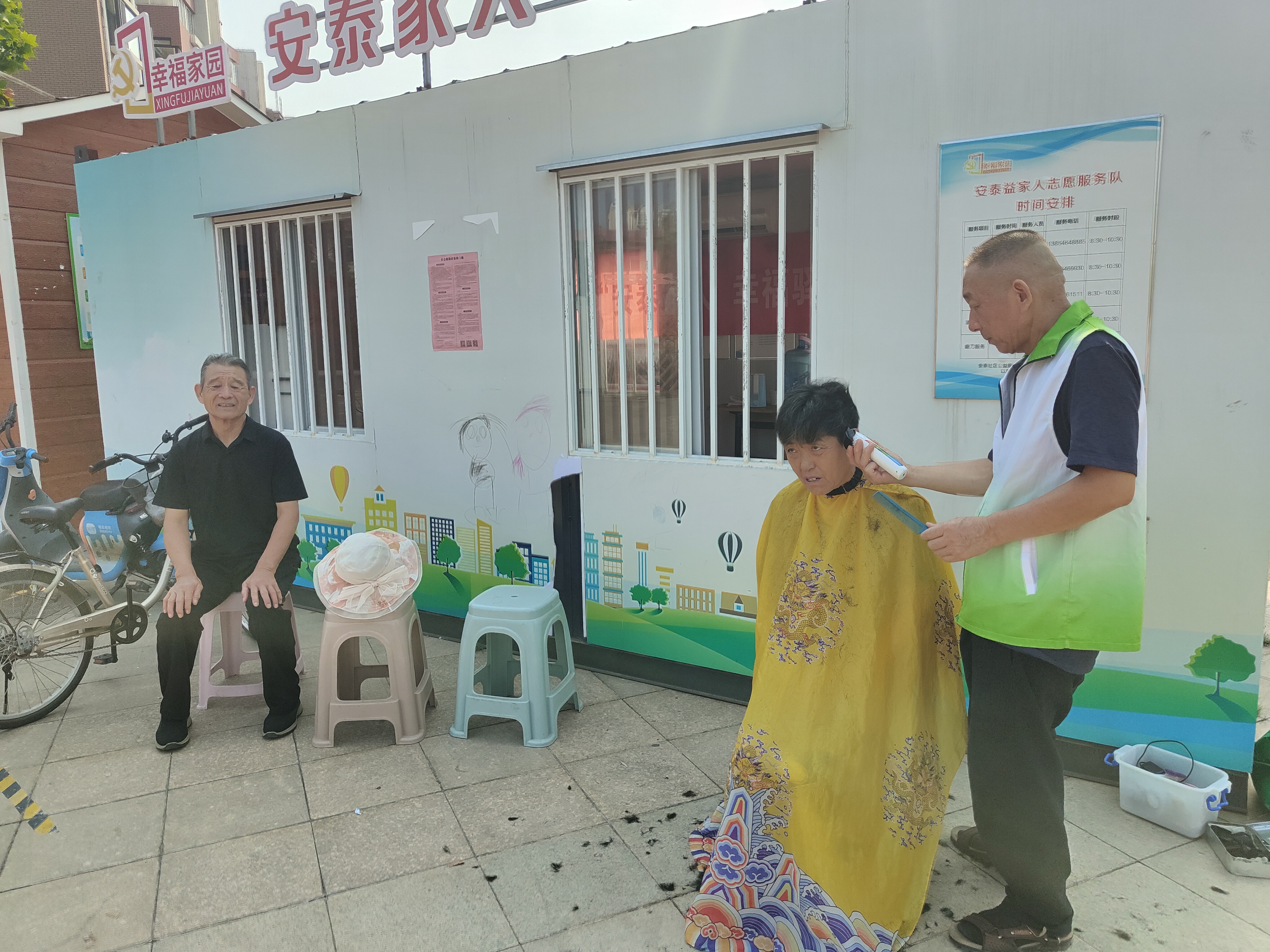 8月31日上午8:30—10:30,安泰社区组织“金秋暖阳 时间银行”义剪志愿者在安泰北区家人幸福广场“安泰家人 幸福驿站”开展义剪活动。 活动中,伴随着“咔嚓咔嚓”声,义剪志愿者娴熟地挥动着手中的剪刀、推子,精心修剪着头发,理完发的老人有了新发型,个个精神焕发,脸上洋溢着欢乐的笑容。 此次义剪活动不仅提升了居民的幸福感,同时营造了社区浓厚氛围,让辖区居民们感受到了实实在在的便利和来自社区的关怀。