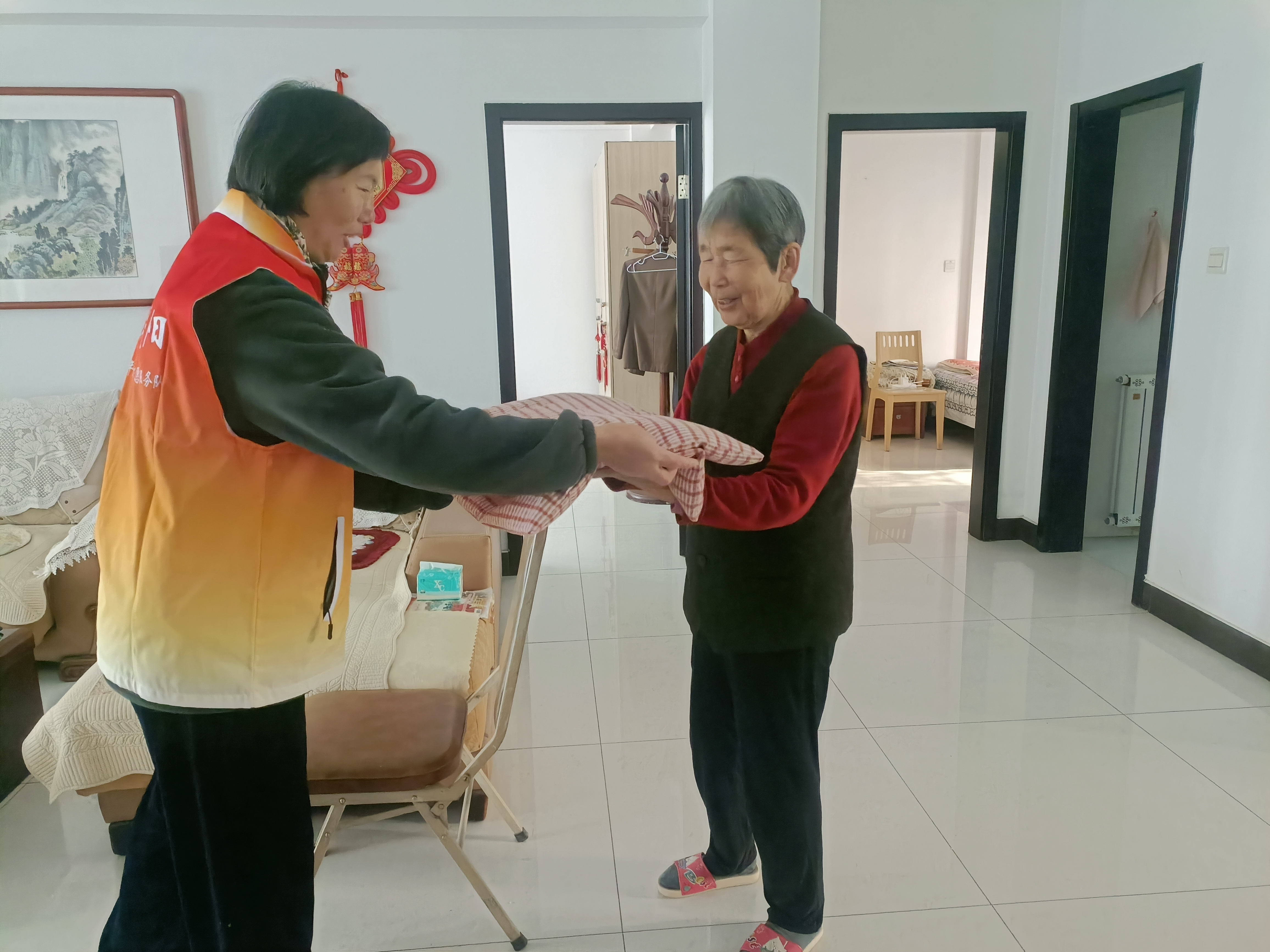 12月5日上午9:00-11:00,安泰社区组织“金秋暖阳 时间银行”志愿服务队为社区高龄老人发放“爱心坐垫”活动,把温暖送到老人手中。 社区居委会工作人员一针一线缝制出数十个“爱心坐垫”,由“金秋暖阳 时间银行”志愿服务队亲手将爱心坐垫送到辖区老人手中。坐垫虽小,传递的却是无尽的真情与关爱,临走时,志愿者们握住杨阿姨的手说道:“有什么困难就找我们,我们就在这附近,下楼遛个弯就能遇着我们,我们会常来您家看您!”杨阿姨说:“你们这次来家里跟陪我聊天,送坐垫,让我心里暖和和的!”。 这小小的温暖举动传递出的是社区为民服务的理念和志愿者们“奉献、友爱、互助、进步”的志愿服务精神。