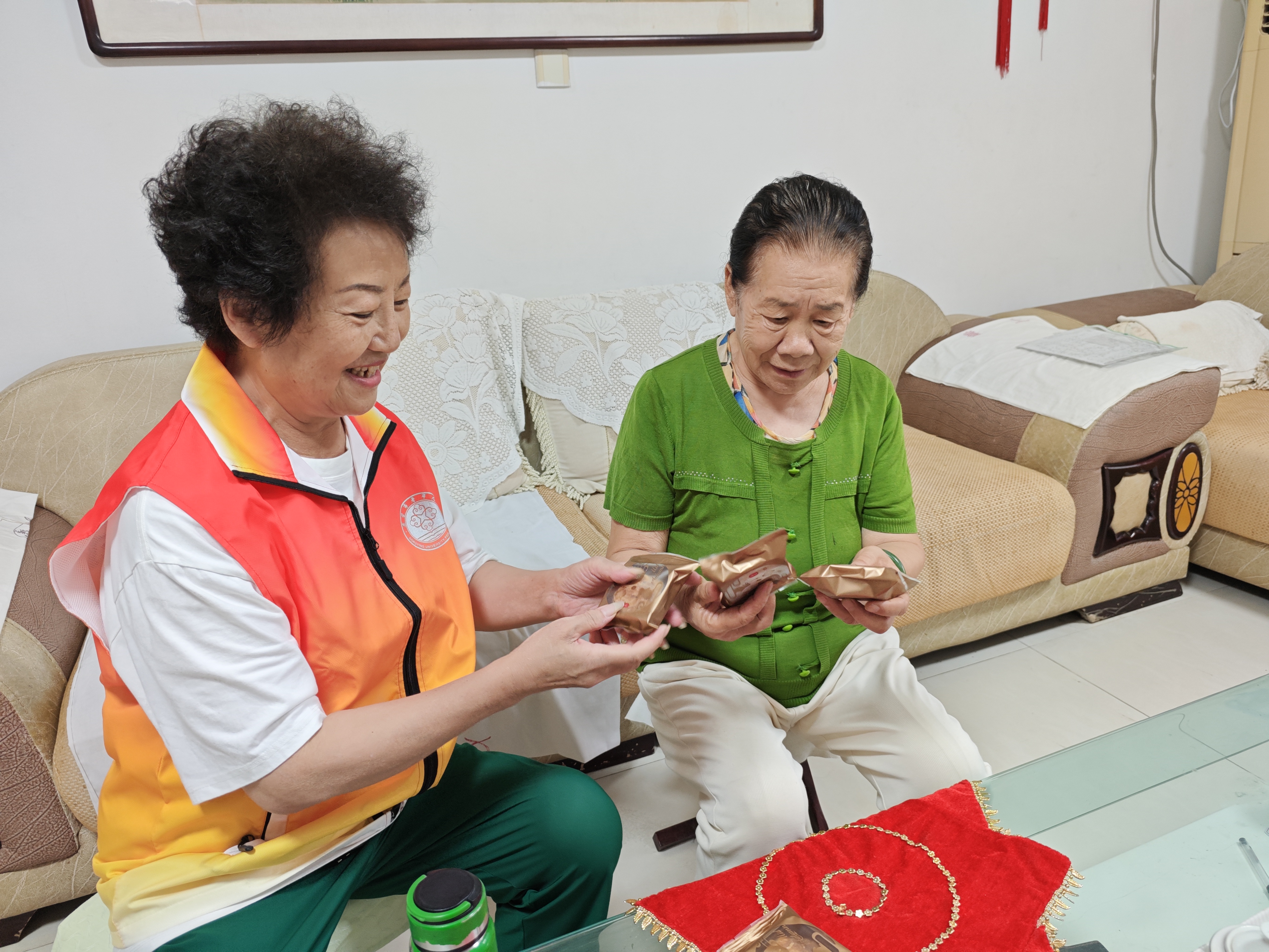 9月13日上午9:00-11:00,安泰社区“金秋暖阳 时间银行”志愿服务队志愿者来到了辖区孤寡老人家中走访慰问,为老人送月饼、送剪纸窗花,并为老人打扫卫生。 一声问候,两句细语,谈话中流露出满满的节日祝福。志愿者亲切地与老人交谈,详细询问了老人近期的身体状况、精神状态以及生活中的困难和诉求,并叮嘱老人一定要保重好身体。老人非常高兴并感谢志愿者的帮助及关心。 “老吾老以及人之老”,安泰社区在中秋节之际,借此活动呼吁社会群众关爱老人,奉献爱心,敬老从心开始,助老从我做起!