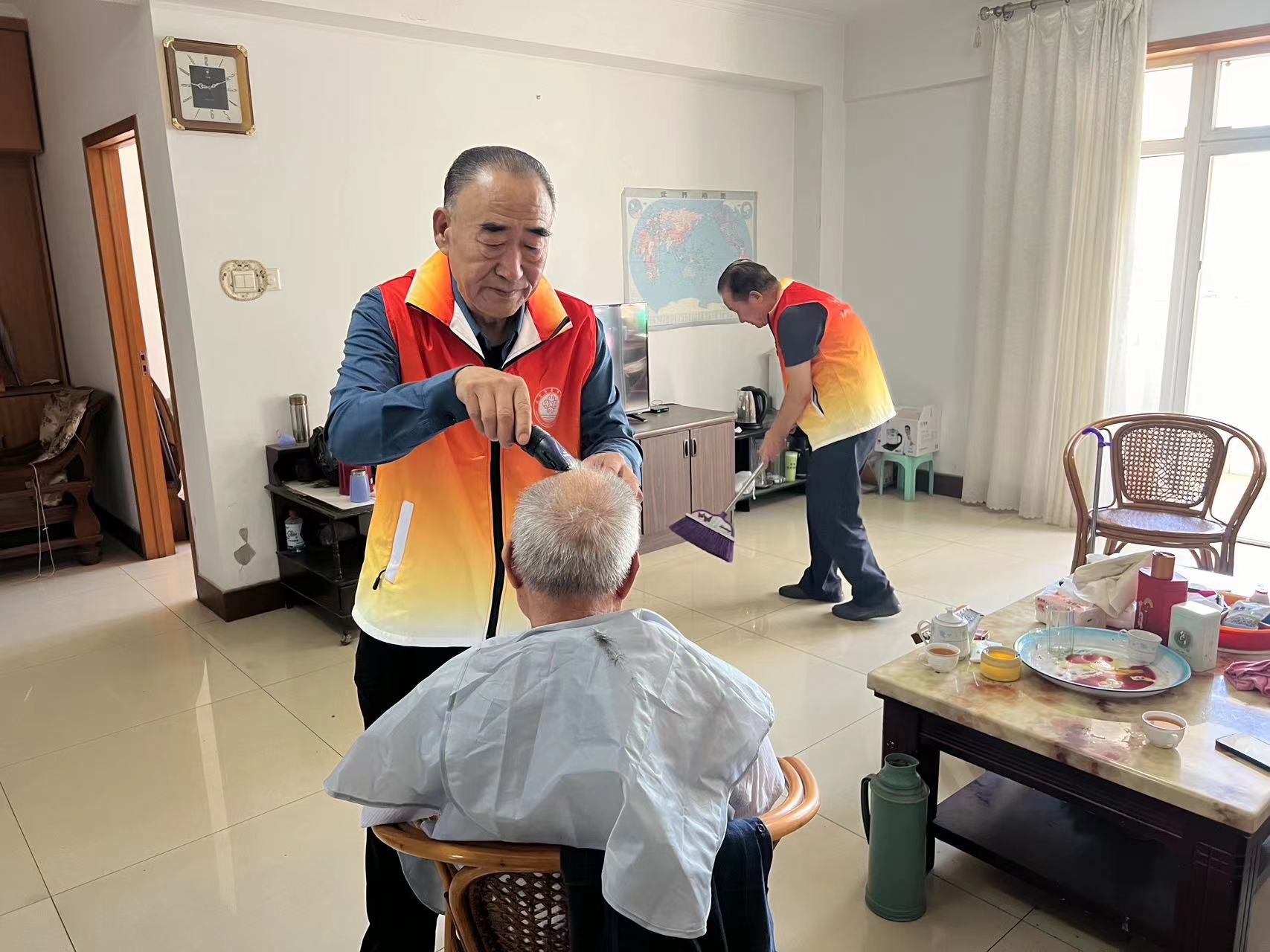 为进一步弘扬志愿服务精神,营造尊老孝老敬老的社会氛围。9月5日上午9:00-11:00,安泰社区“金秋暖阳 时间银行”志愿服务队开展“爱心义剪 清洁卫生”志愿服务活动。 志愿者们准备好各类工具来到安泰南区牟乃安老人家中,在义剪活动中,志愿者一边细心地帮长者理发,一边与他们唠着家常。同时志愿者一边同老人谈心,询问老人最近的生活状况和生活需求,一边帮老人打扫卫生,大家动作麻利,很快将屋子里的角角落落清理了一遍。 小小理发推子,一块块小擦布,几把小扫帚,浓浓敬老情。此次活动,让社区居民享受的不仅仅是免费的理发服务,更多的是让居民切实感受到来自社区的关怀,大大提高了辖区居民的满意度和幸福感。
