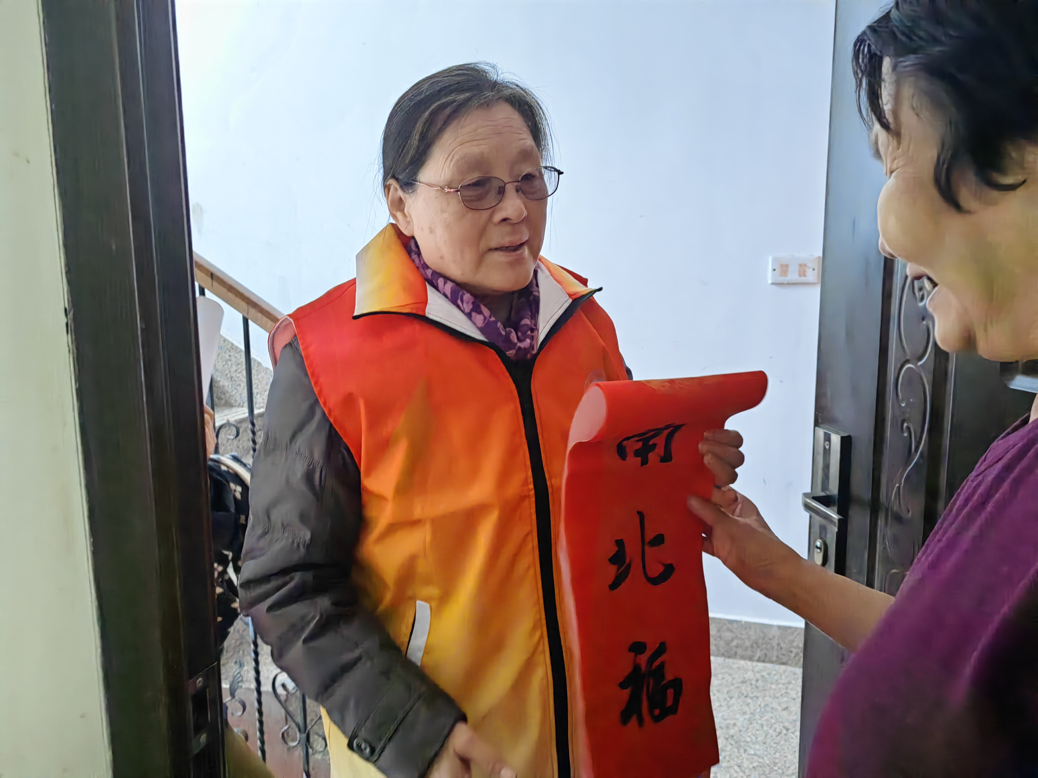 1月20日下午14:00-16:00,安泰社区组织“金秋暖阳 时间银行”志愿者开展“温情入户送春联”活动,为行动不便人家中增添一份年味、一份温暖、一份喜悦。 活动中,志愿者们走进安泰南区戴德荣家中,详细了解探访服务对象近期的身体状况和生活情况,与探访对象唠着家常、聊着天,认真倾听他们的心声,使其在倾诉中缓解内心压力。 一幅红红火火的春联,每一句真诚的新年祝福,都代表着社区对居民的美好祝愿。此次活动的开展,营造了健康温馨、积极向上的社区文化氛围,让社区居民感受到了社区大家庭的温暖,全力提升了辖区居民的安全感、幸福感、获得感。