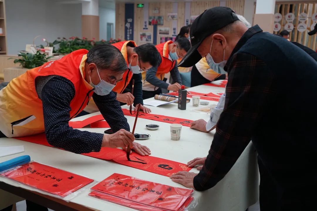 活动现场,墨香四溢,处处洋溢着春的温暖、年的祥和,锦华社区文竹书画院的艺术家们也自发参与到活动中来,与老年大学艺术家们一起挥毫泼墨,写春联、送福字。“春风得意随人愿,虎气生威壮国魂”“春光春色源春意,虎将虎年扬虎威”一幅幅喜庆吉祥的对联,一句句温馨美好的祝福,通过俊逸优美的书法作品向社区居民传递节日美好祝福。