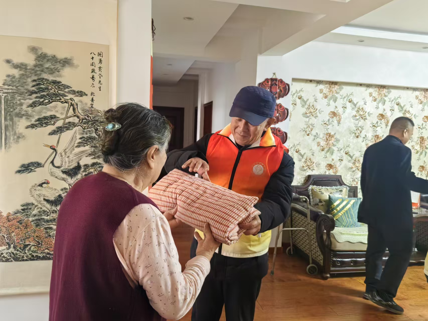 为更好传承和弘扬中华民族尊老、爱老、敬老、助老的传统美德,积极开展多元化、多样化的关爱老人志愿服务活动。12月12日上午9:00-11:00,安泰社区联合鹏飞物业、“金秋暖阳 时间银行”志愿服务队开展“入户慰问高龄老人 温情走访暖人心”志愿活动。 社区工作人员、鹏飞物业人员和“金秋暖阳 时间银行”志愿者走进安泰南区黄国勇和黄玉华老人家中,与老人聊家常,询问生活需求,详细了解他们的思想状况和身体情况。一盆长寿花、一份“调料”套装、一对“爱心坐垫”,送去的是一份贴心,一份欢笑、一点温暖。 此次走访慰问活动,在辖区营造了敬老、爱老、亲老、孝老的祥和氛围,真正让老人们老有所养、老有所依、老有所乐,安享幸福晚年。