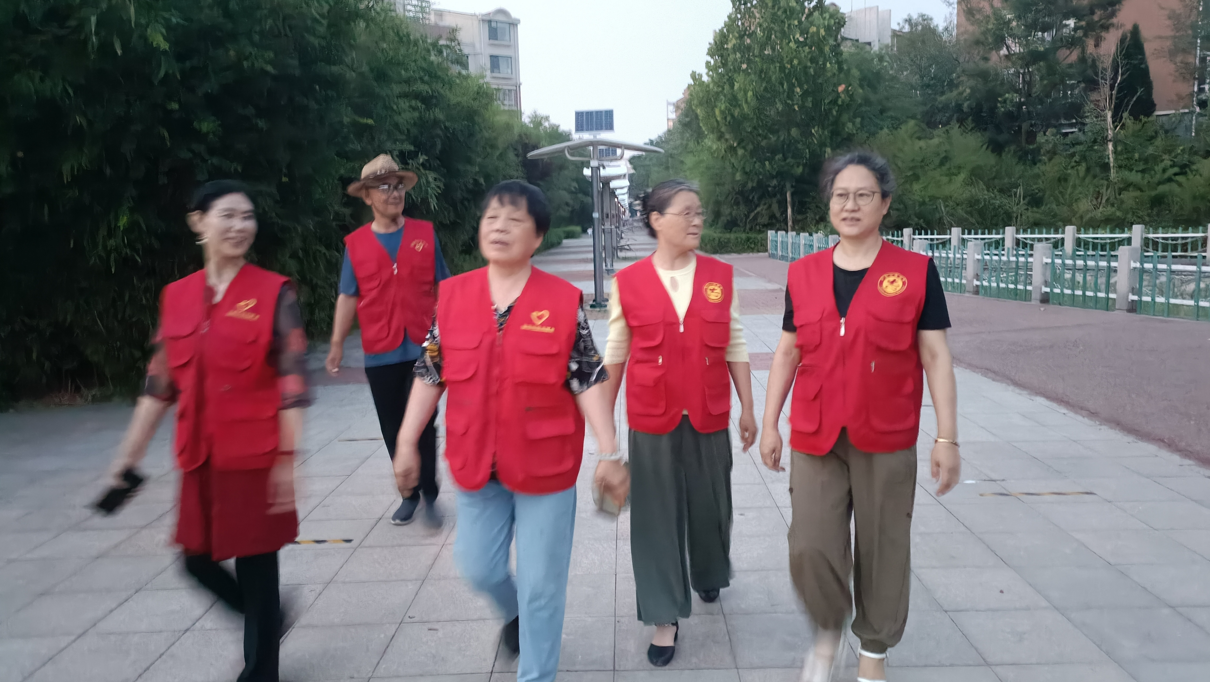 为确保辖区安定,守护一方净土。7月25日晚19:30-20:30安泰社区组织“金秋暖阳 时间银行”志愿服务队在安泰南区开展“平安社区 爱心夜巡”活动。 安泰社区“金秋暖阳 时间银行”志愿者们身穿红马甲,在辖区楼幢间、小区路径进行巡视、检查,发现有需要帮助的人员主动上前询问情况。同时耐心提醒住户锁好车辆、关好门窗、做好防火、防盗等治安防范宣传工作。确保辖区居民的人身和财产安全。 通过开展义务巡逻志愿活动,居民的安全感、文明程度逐步增强,有力维护了社区的治安稳定,受到了广大居民的欢迎与好评!