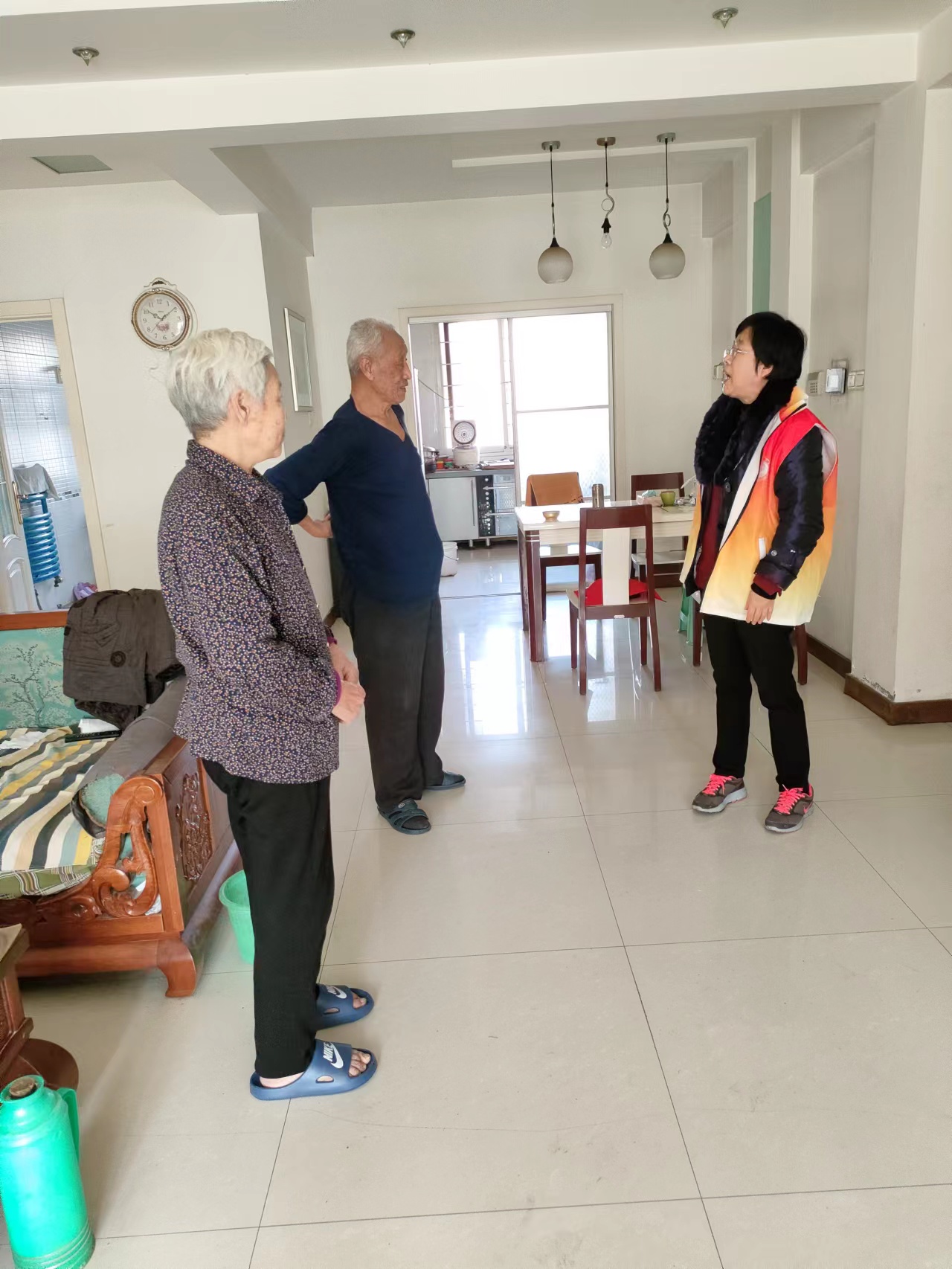 为弘扬中华民族尊老、爱老、敬老、助老的传统美德,关注社区高龄老人的需求,安泰社区于12月5日上午9:00-11:00,组织“金秋暖阳 时间银行”志愿服务队开展“心系高龄老人 暖心入户探访”爱心助老服务活动。 志愿者们来到安泰南区徐会英老人家中,热情的和老人聊家常,了解老人的身体及生活状况,关注老人的所需所想,强调一定要注意用火用电用气安全,一定要仔细检查煤气阀门是否拧紧,叮嘱老人要注意身体健康。活动结束后并为老人家中的垃圾领走扔垃圾站点垃圾桶内,切实让高龄老人感受到社区的温暖。 本次活动,志愿者们面对面与老人交流沟通,一句句关怀的话语,点点真情和实际行动温暖了长者的心,让他们开朗高兴起来。