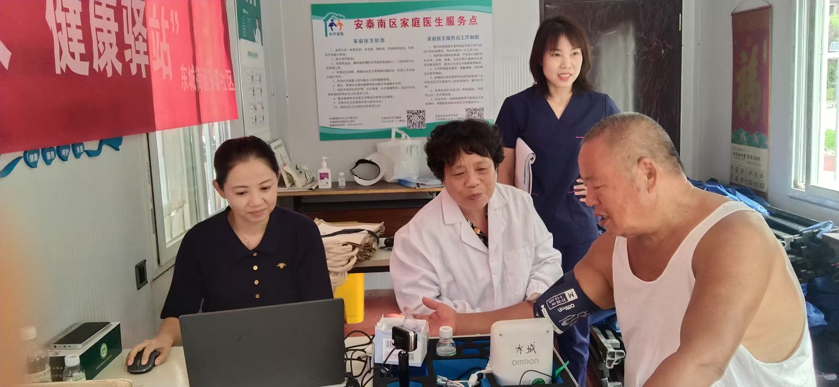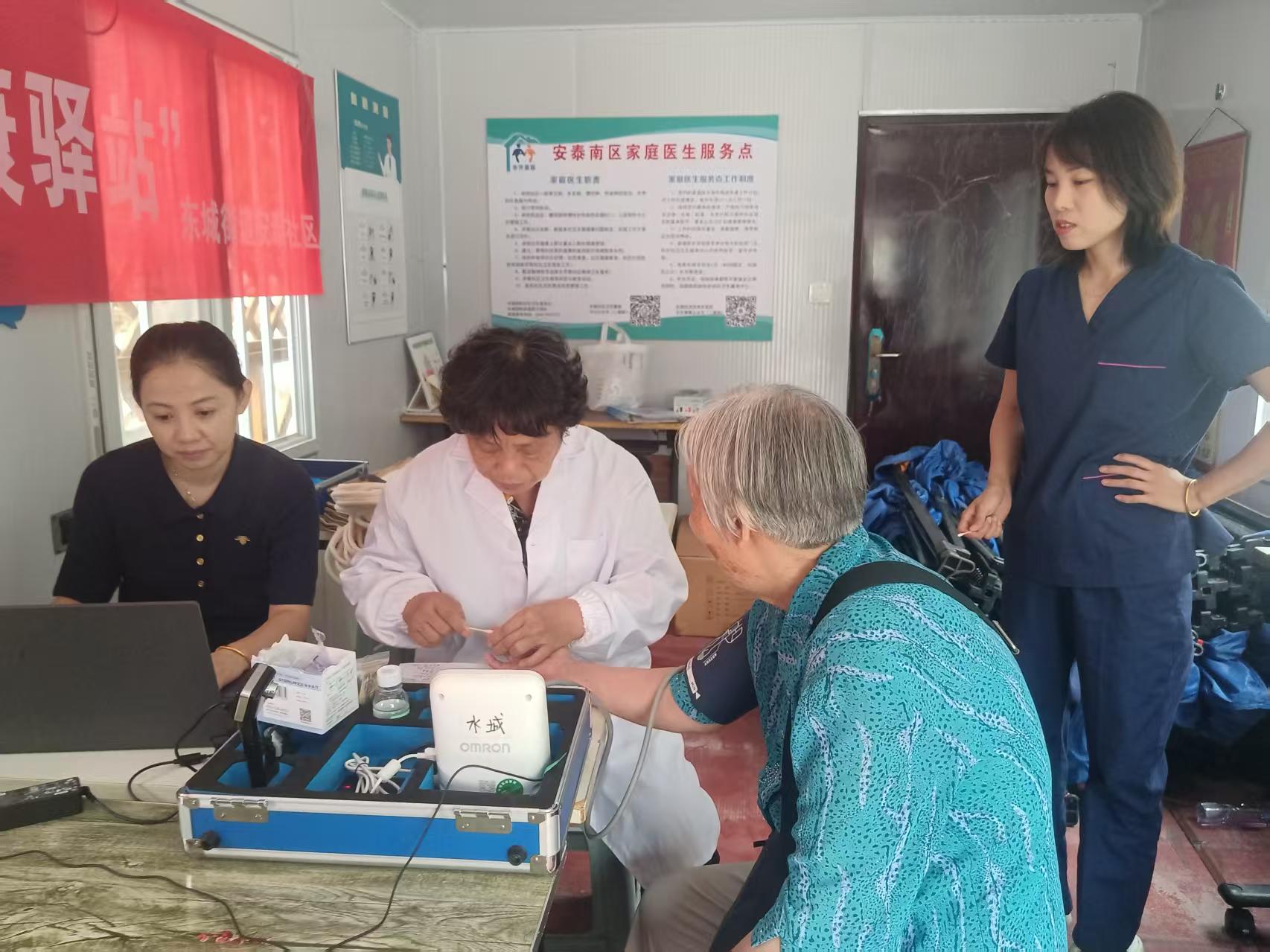 8月27日上午8:20-10:20,安泰社区联合东城医院、“金秋暖阳 时间银行”志愿服服务队“健康义诊”公益服务活动于南区“家庭医生 健康驿站”如期开展。 现场通过免费为辖区居民提供血糖、血压检测等基础健康检查服务,有效解决部分居民“日常体检不便”的困扰,尤其为老年群体与行动不便居民打造了便捷健康服务通道。 义诊服务常态化开展进一步增强了居民的健康获得感。