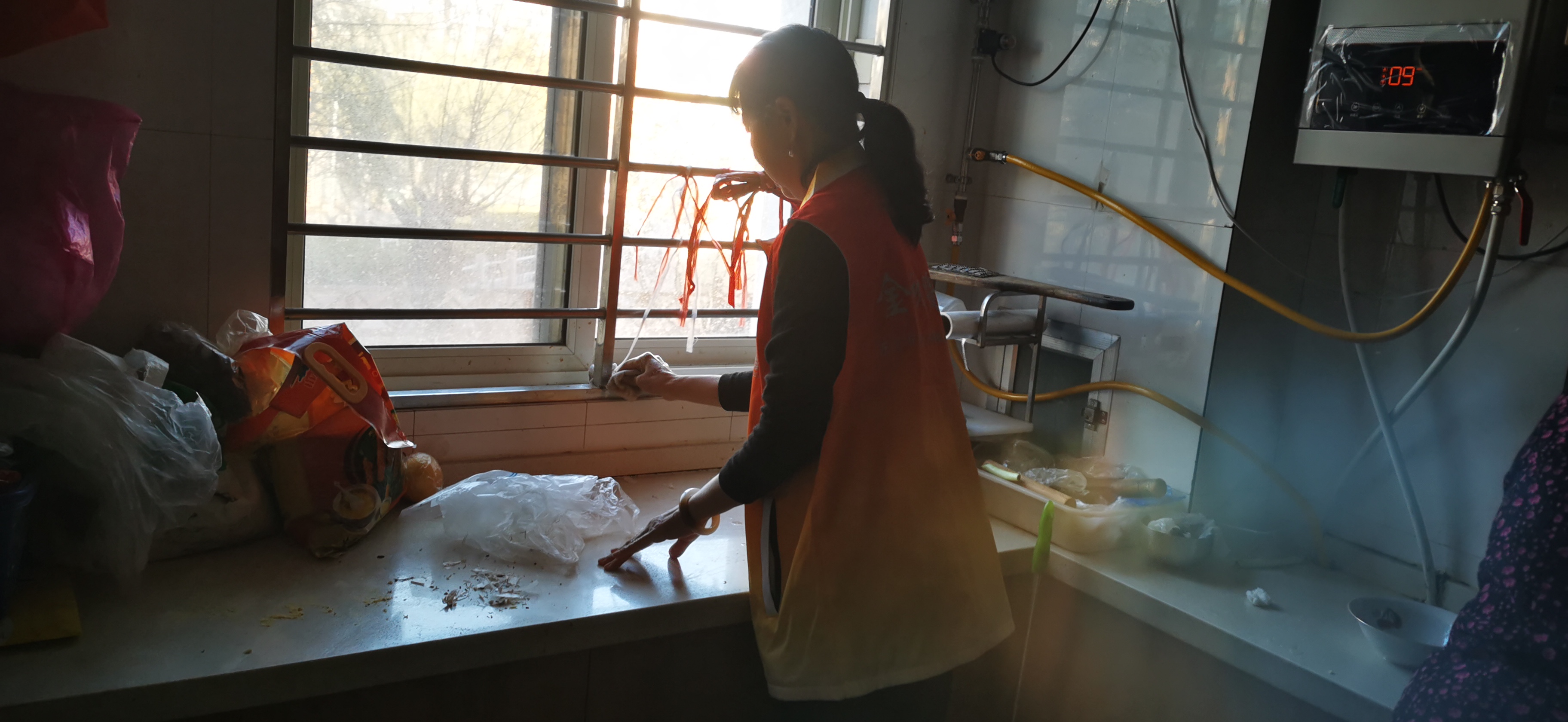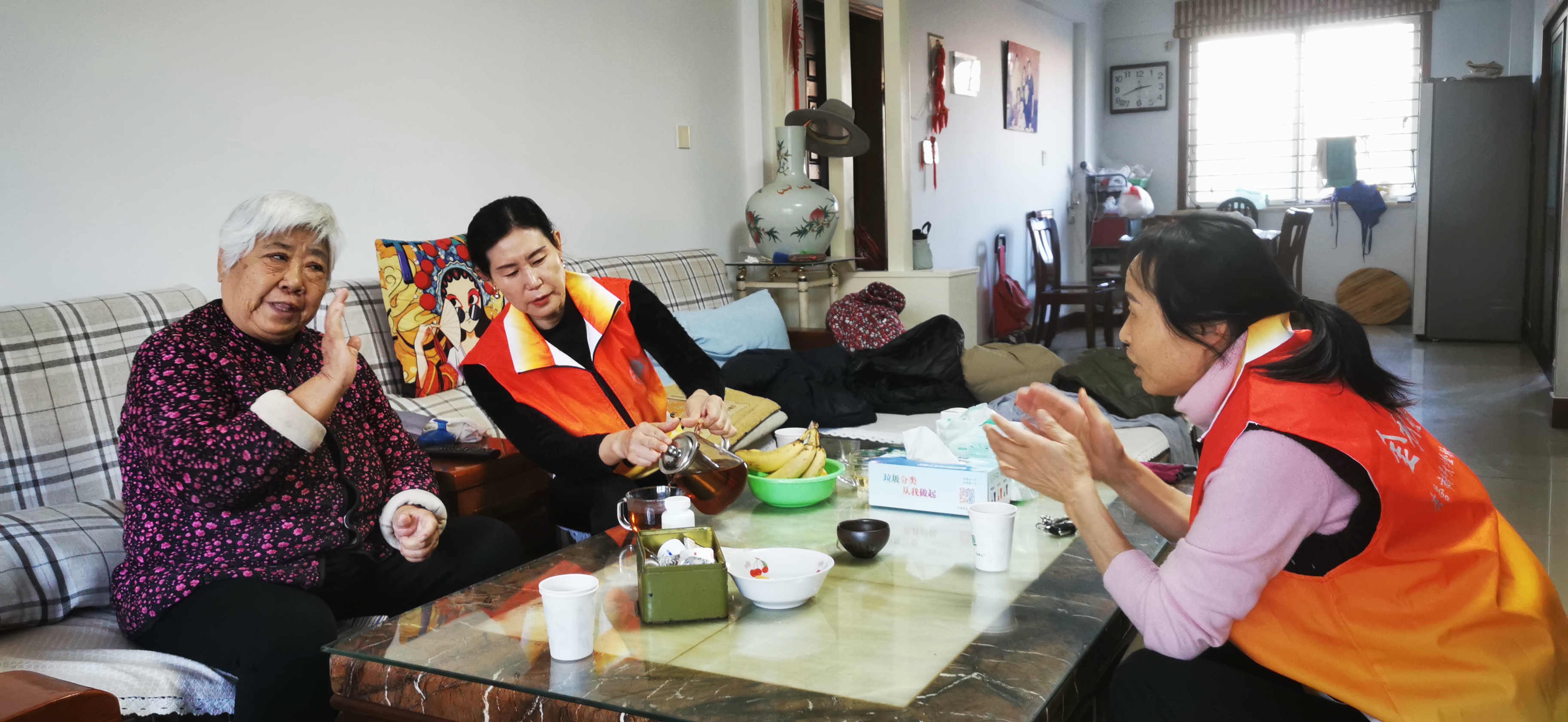寒冷的冬季阻挡不了关怀的脚步,更挡不住助老送温暖的心。11月29日下午15:00-17:00,安泰社区“金秋暖阳 时间银行”志愿者入户帮助辖区高龄独居老年人打扫清洁,改善老人的居住环境状况,提升老人的幸福感。 志愿者来到安泰南区独居老人家中,为他们拖地、擦桌子、收集零散物品等。卫生打扫结束后,志愿者拉着老人的手与他们谈心,拉拉家常,并和老人做手指游戏,锻炼脑力,预防老年痴呆了,并叮嘱其保重身体,保持心情愉悦。 此次活动,不仅为辖区高龄老年人送去了温暖帮助他们解决了打扫卫生的实际困难,也发扬了社区坚持关爱高龄老年人。