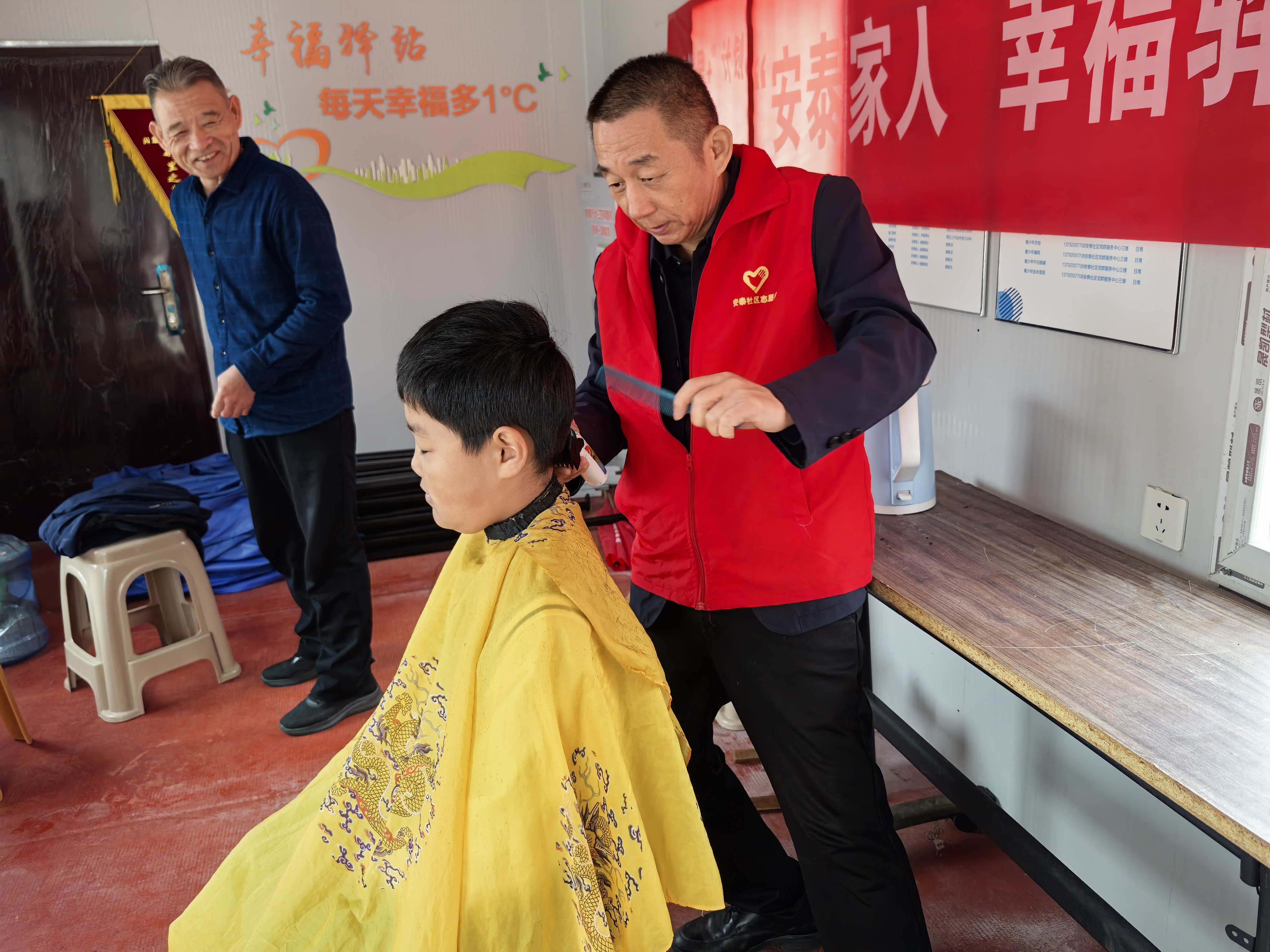为进一步弘扬志愿服务精神,发挥安泰社区能人特长,为辖区居民提供贴心便利的服务,11月16日上午8:30-10:30,安泰社区幸福驿站“情暖人心,爱心义剪”活动,如期开展。 活动现场,志愿者早早地准备好工具、摆放好凳子,热情地迎接每一位前来理发的居民。理发师手法娴熟,动作利落,一边精心修剪着头发,一边与大家亲切交流,询问他们对发型的要求和喜好。剪刀在手中飞舞,发丝纷纷飘落,不一会儿,一个个精神抖擞、整洁清爽的发型便呈现在眼前。 此次活动,不仅为辖区居民提供了便利,也让居民感受到社区的关爱和温暖。同时,通过这样的活动,进一步增强能人队伍的自治能力。