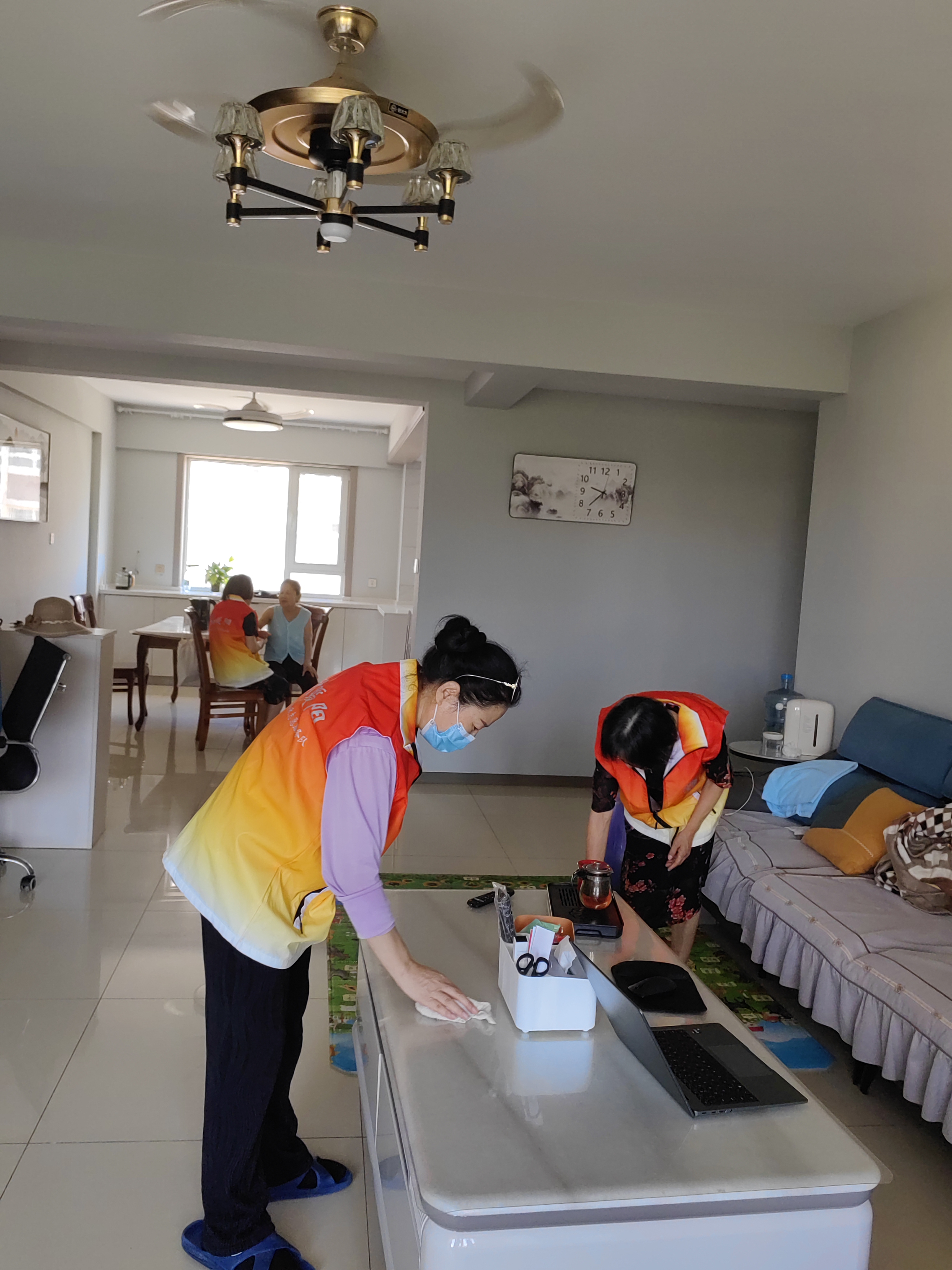 7月28日上午9:00-11:00,安泰社区“金秋暖阳 时间银行”来到辖区独居老人家中,帮他们打扫卫生、聊天,为他们提供暖心的志愿服务。 志愿者们来到独居老人家中,有序地帮着老人擦玻璃、拖地、收集零散物品等。在打扫过程中,志愿者还和老人聊天,对老人嘘寒问暖,了解老人的生活状况,告诉老人如果遇到困难可以随时给社区打电话。 通过此次志愿服务活动,不仅切实解决了老人的实际困难,让辖区老人感受到了社区大家庭的温暖。