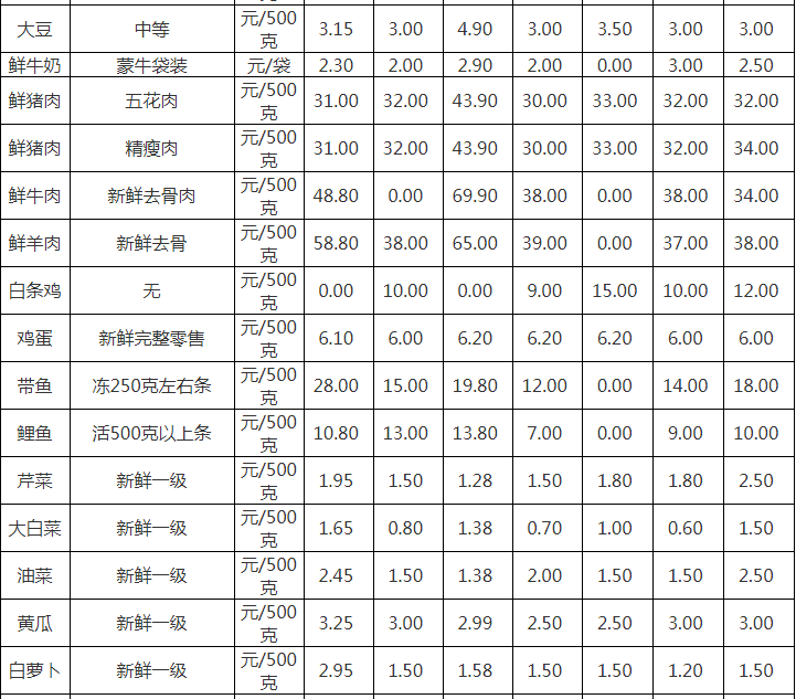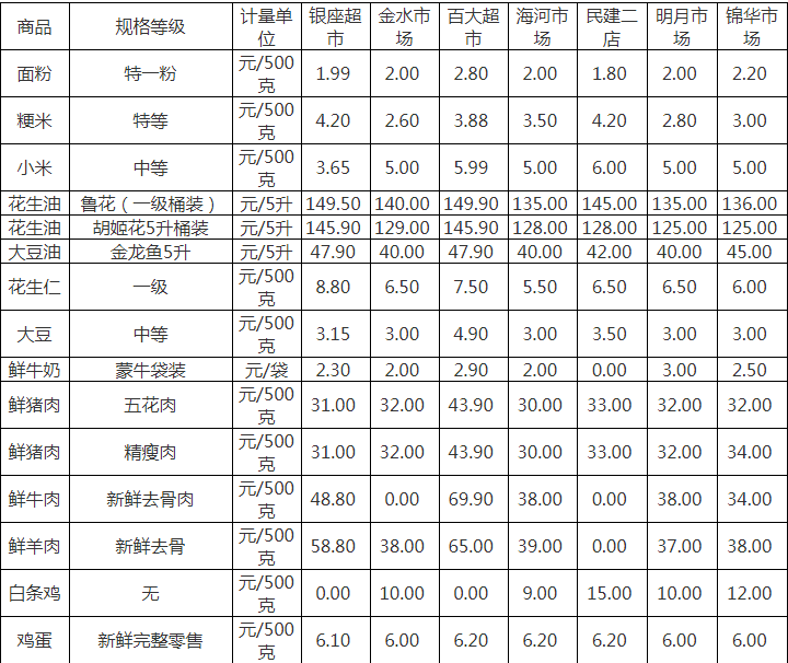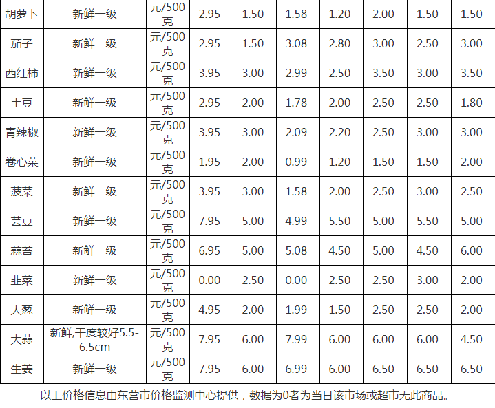 东营市中心城区部分农贸市场和超市农副产品“晒价格”监测信息