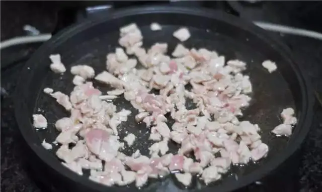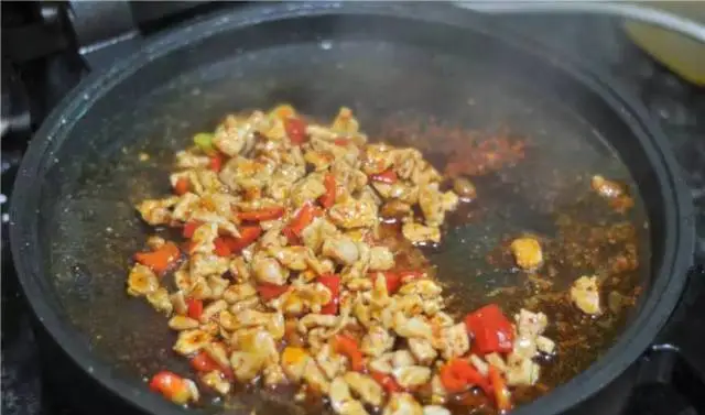 2.油锅烧热,将肉末倒进去,翻炒至变色
